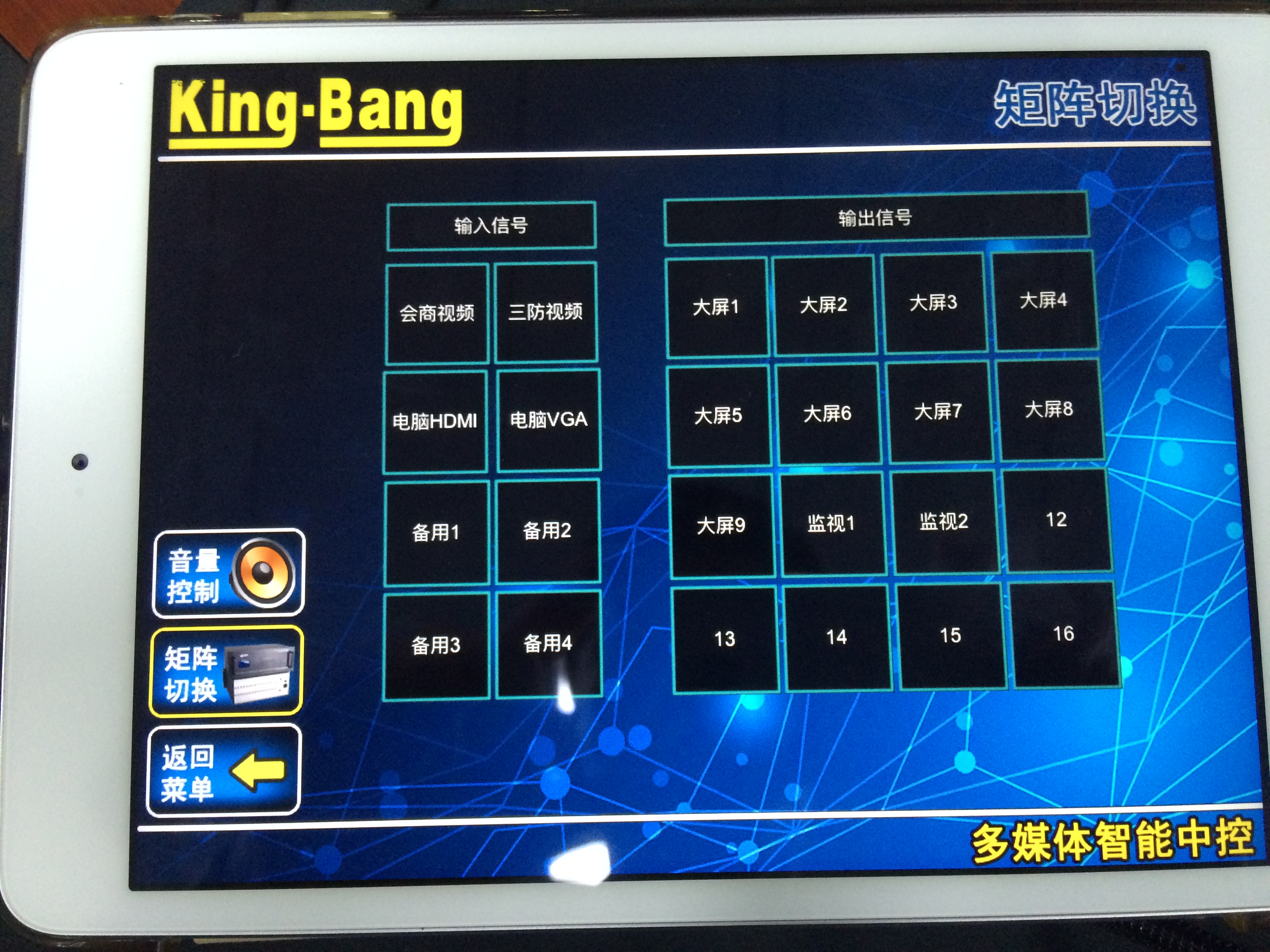 京邦電子(KING-BANG)以用戶為中心,根據(jù)茂名市化州氣象局會(huì)議室現(xiàn)場情況,并結(jié)合客戶需求,提出了一套完美的智能會(huì)議中控解決方案。京邦電子(KING-BANG)提供解決方案是采用的是可編程中央控制主機(jī)K-4960作為會(huì)議室控制系統(tǒng)的核心運(yùn)算主機(jī),對會(huì)議室的聲、光、電設(shè)備的操控進(jìn)行整合,然后經(jīng)過程序編寫將所有的控制集中到觸摸屏控制界面,搭配京邦電子(KING-BANG)其他中控周邊設(shè)備,完美實(shí)現(xiàn)一鍵智能化控制。