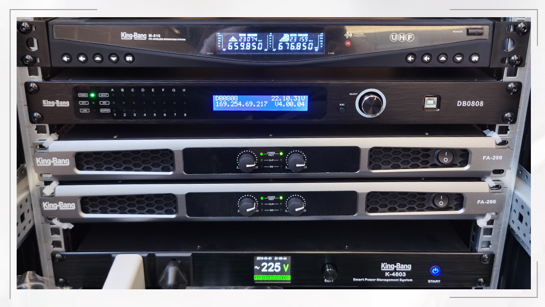 專業(yè)擴聲系統(tǒng)簡單來說就是把聲音信號放大,主要由聲源、音頻處理設(shè)備、功放及揚聲器系統(tǒng)組成。通過計算會議室的音響場地系數(shù)進行設(shè)計,保證會議室每個角落的聲場聽覺均勻,音響效果達到語言清晰、無失真、聲場分布均勻。電聲設(shè)備的組成音頻環(huán)境的建立離不開電聲設(shè)備,它由以下四個部分組成:聲源設(shè)備——指拾音設(shè)備、影音信號播放設(shè)備如:拾音話筒、CD、MD、DAT、DVD等設(shè)備;調(diào)控設(shè)備——指對聲源設(shè)備送出的音頻信號等多路的音頻信號進行前級的放大和混音輸出、音頻信號處理的設(shè)備,如:調(diào)音臺、均衡器、反饋抑制器等設(shè)備;放大設(shè)備——指對經(jīng)過調(diào)控設(shè)備混音輸出、信號處理后的信號進行后級功率放大設(shè)備,這里指專業(yè)功率放大器;重放設(shè)備——指將經(jīng)過后級功率放大器放大的音頻信號進行電—聲轉(zhuǎn)換并釋放表現(xiàn)出來人耳可懂的聲頻信號的設(shè)備,這里指揚聲器;