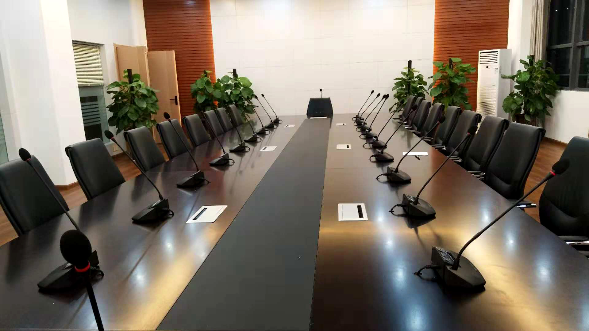 專業(yè)擴(kuò)聲系統(tǒng)的喇叭采用一對一定阻傳輸方式,音箱與功放阻抗匹配,采用全頻寬頻音箱,為會議室還原出最佳的音質(zhì)效果,保證音頻擴(kuò)音系統(tǒng)易操作、功能靈活,滿足萬誠國際中心各種工作會議的不同功能要求。