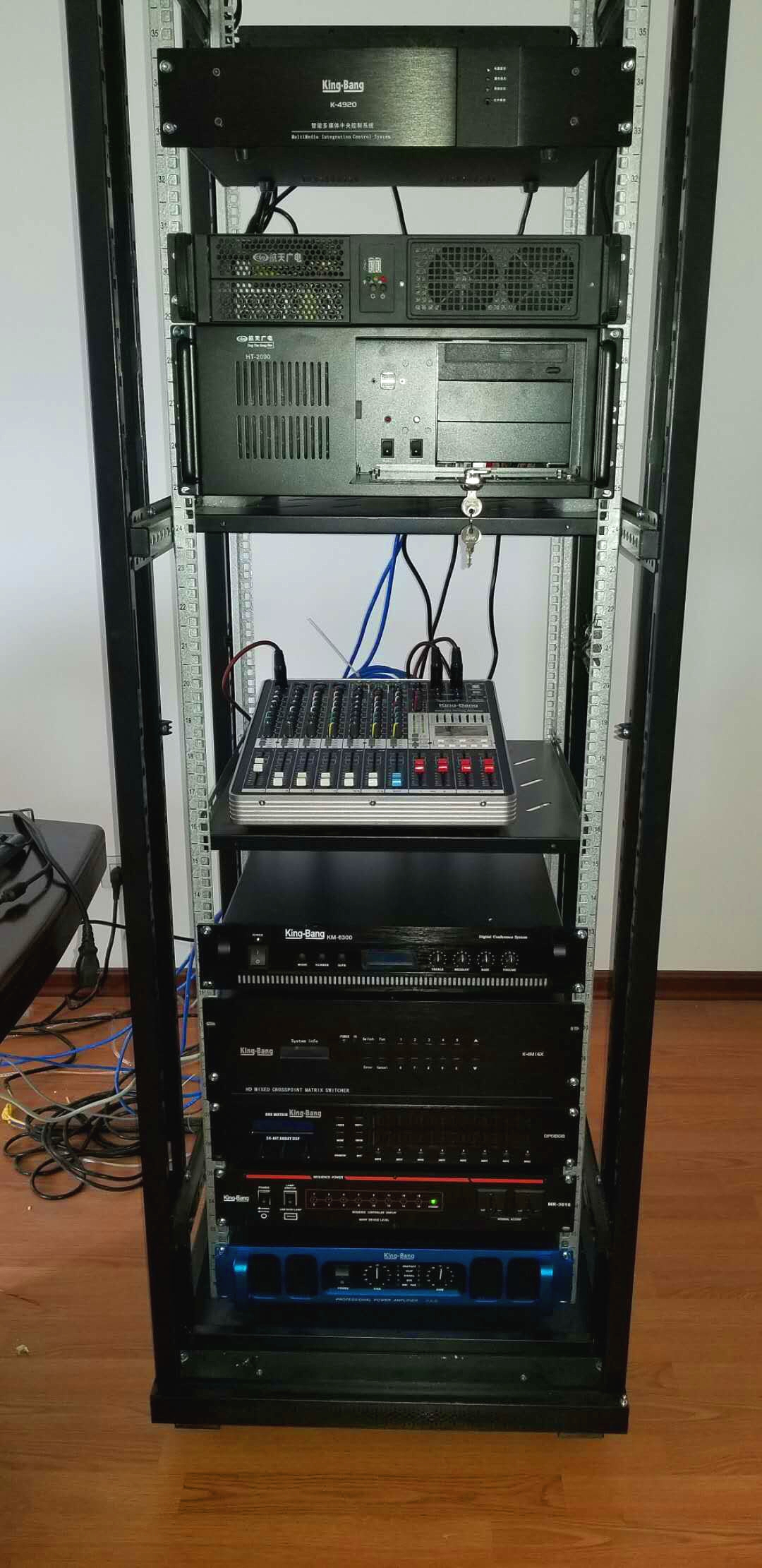 音視頻切換系統(tǒng):選用京邦電子(KING-BANG)MID系列高清混合插卡矩陣作為整個指揮中心信號切換的核心。無縫切換。防止切換過程中出現(xiàn)的延時、黑屏、卡頓等現(xiàn)象,信號切換順暢如絲,給與會者一種極好的視覺享受。DVD、電腦、播放器、硬盤錄像機(jī)、視頻會議終端等所有的設(shè)備都可以無縫切換至電視顯示大屏上。