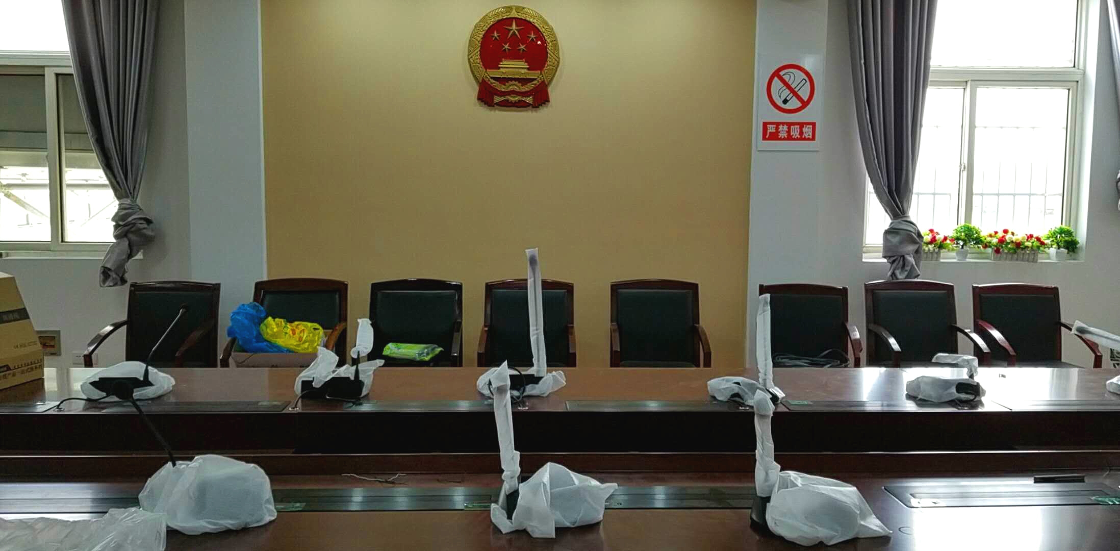 通過對蚌埠市蚌山區(qū)人民法院的了解,京邦電子(KING-BANG)打造一套完整的會議系統(tǒng),包括會議發(fā)言討論系統(tǒng)、音視頻切換系統(tǒng)、中央控制系統(tǒng)等。對人員和執(zhí)法現(xiàn)場的時間、地點、狀態(tài)、音視頻等關(guān)鍵環(huán)節(jié)實施信息采集、定量分析與實時處理。形成科學(xué)的綜合管理系統(tǒng),使管理工作中達(dá)到平時工作有、遇突發(fā)事件處置靈活的高效工作模式。